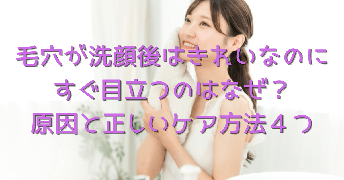 - 洗顔後きれいな毛穴が、すぐに目立つようになる原因は、正しく洗顔が出来ていないことで起きる皮脂分泌にありました。